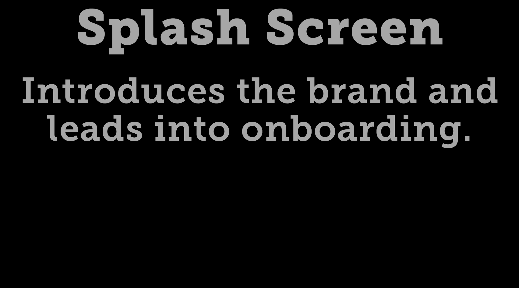 Splash Screen Introduces the brand and leads into onboarding.