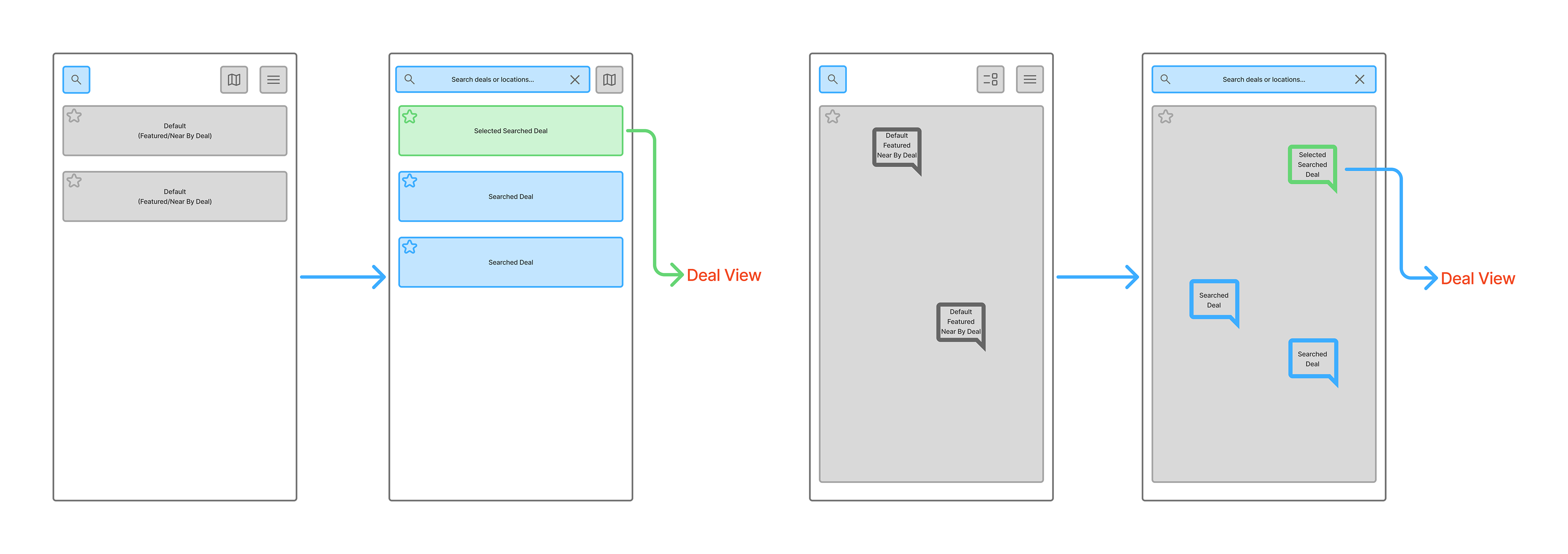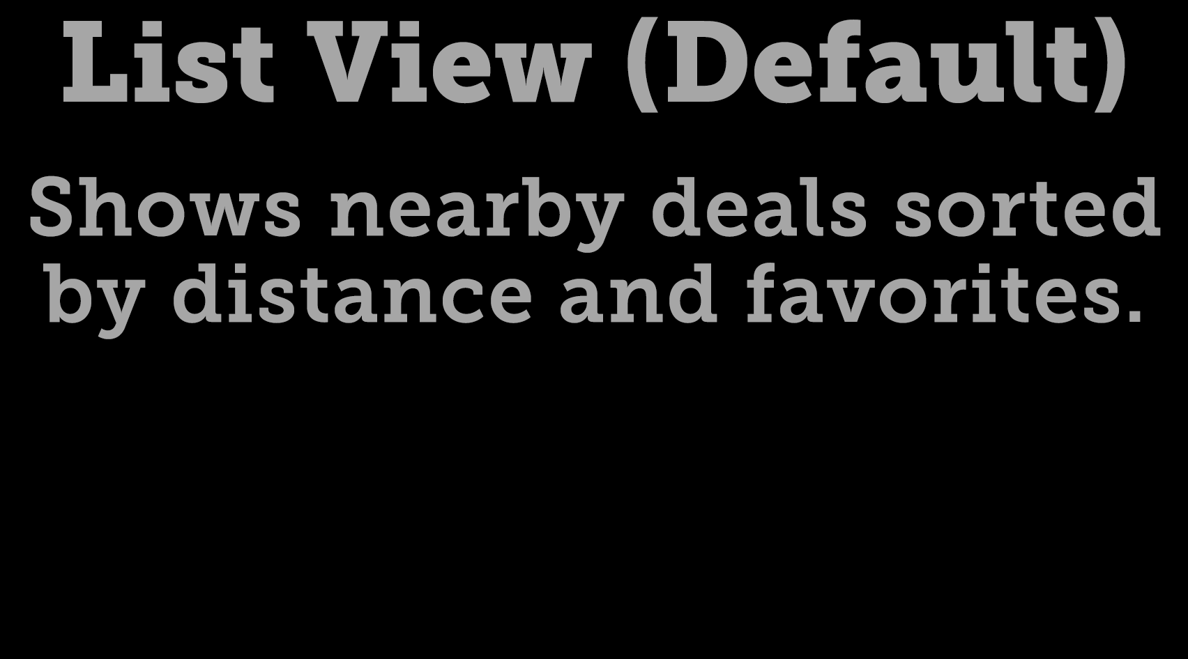 List View (Default) Shows nearby deals sorted by distance and favorites.