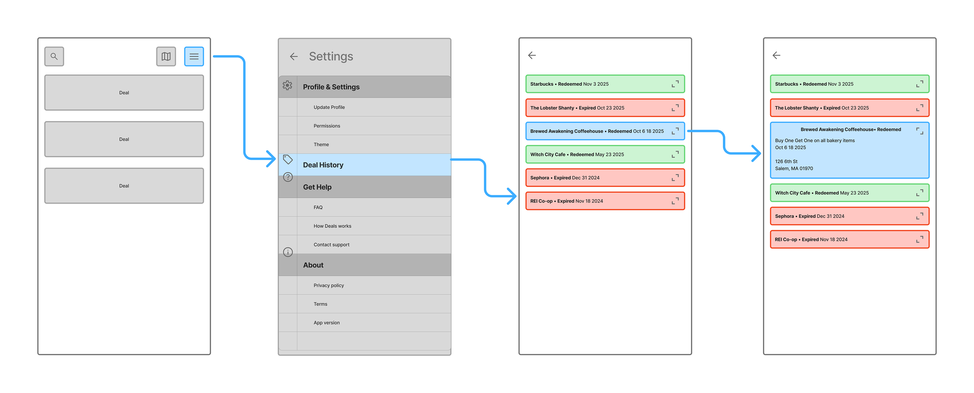 Menu & Deals History
