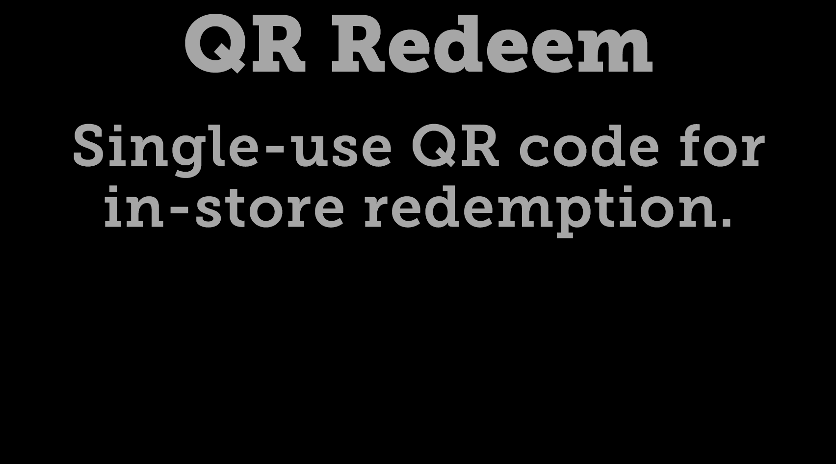 QR Redeem Single-use QR code for in-store redemption.