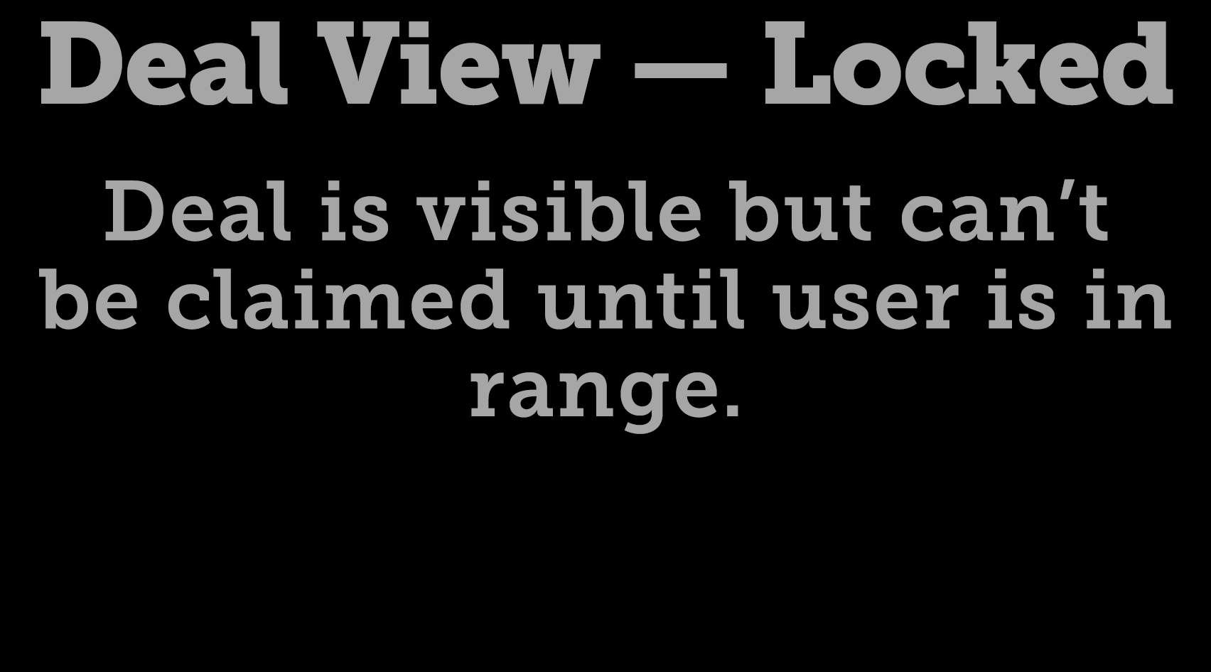 Deal View - Locked Deal is visible but can’t be claimed until user is in range.